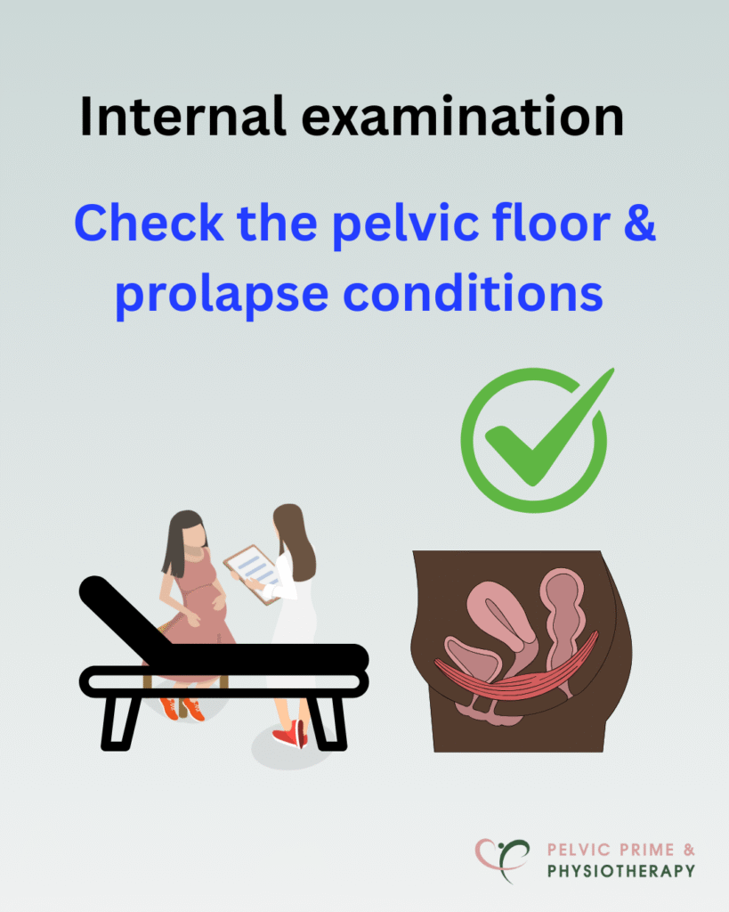 During the internal exam, your main issues can be identified, such as prolapse, pelvic floor dysfunction, or pelvic floor tightness or weakness.